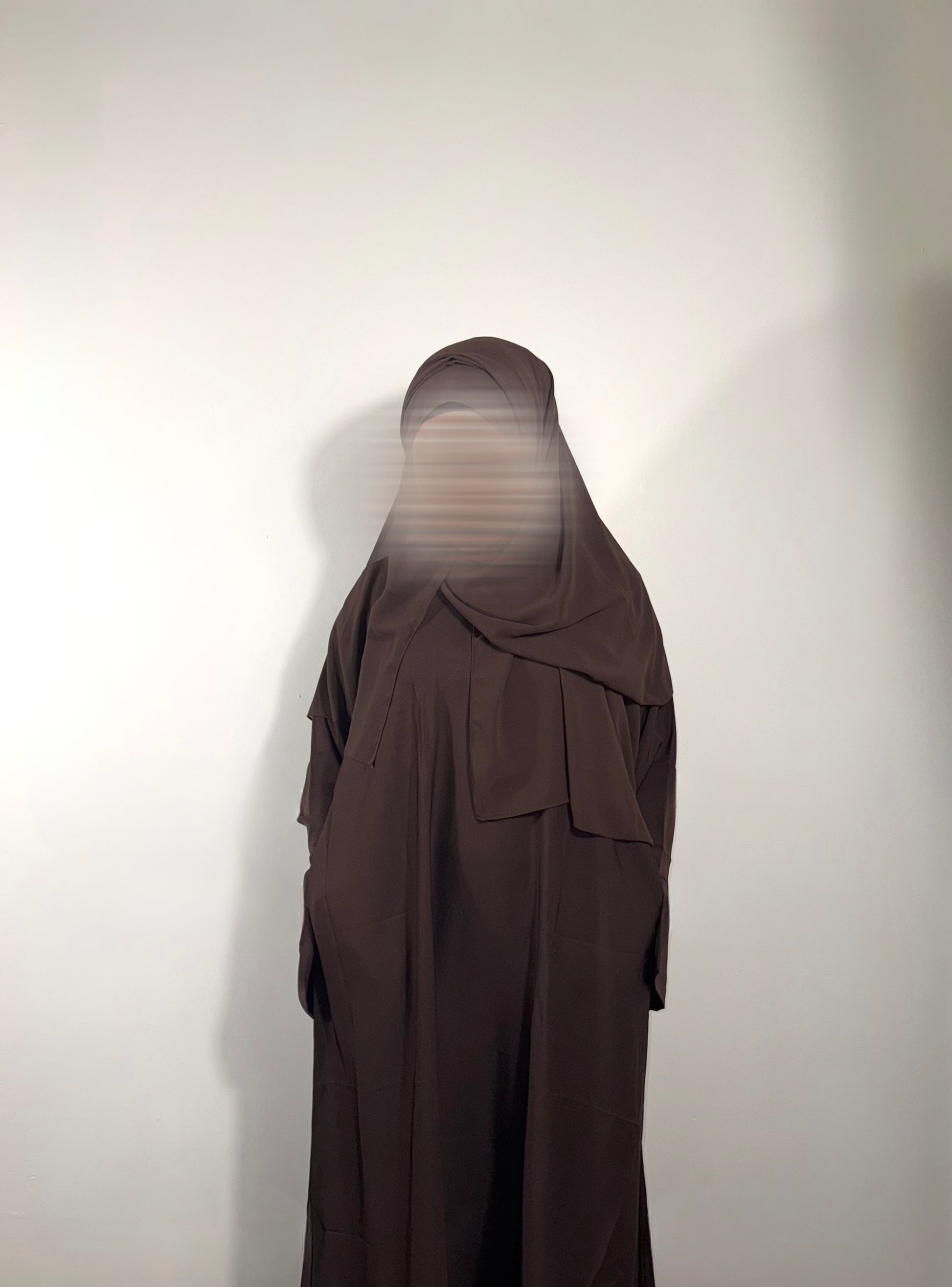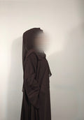 an open abaya set in dark cocoa, a staple for every wardrobe. perfect to dress up or down for your needs.