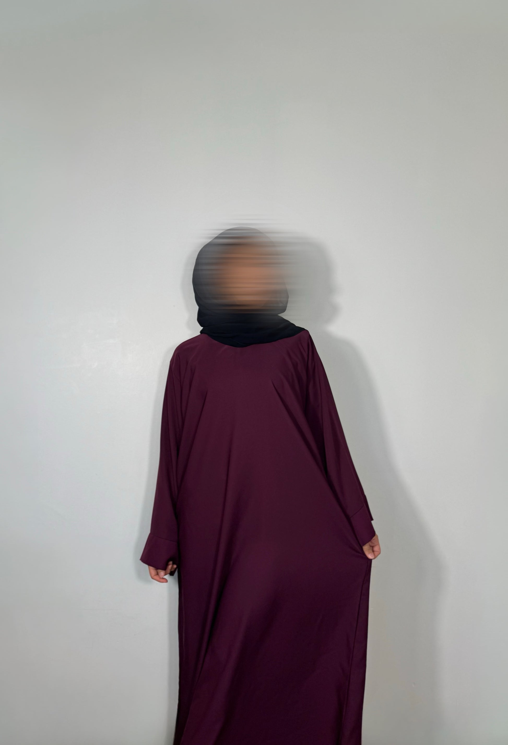made from buttery soft nida, our closed abaya in burgundy flows beautifully and features hidden pockets—perfect for everyday wear or dressing up with ease.