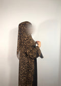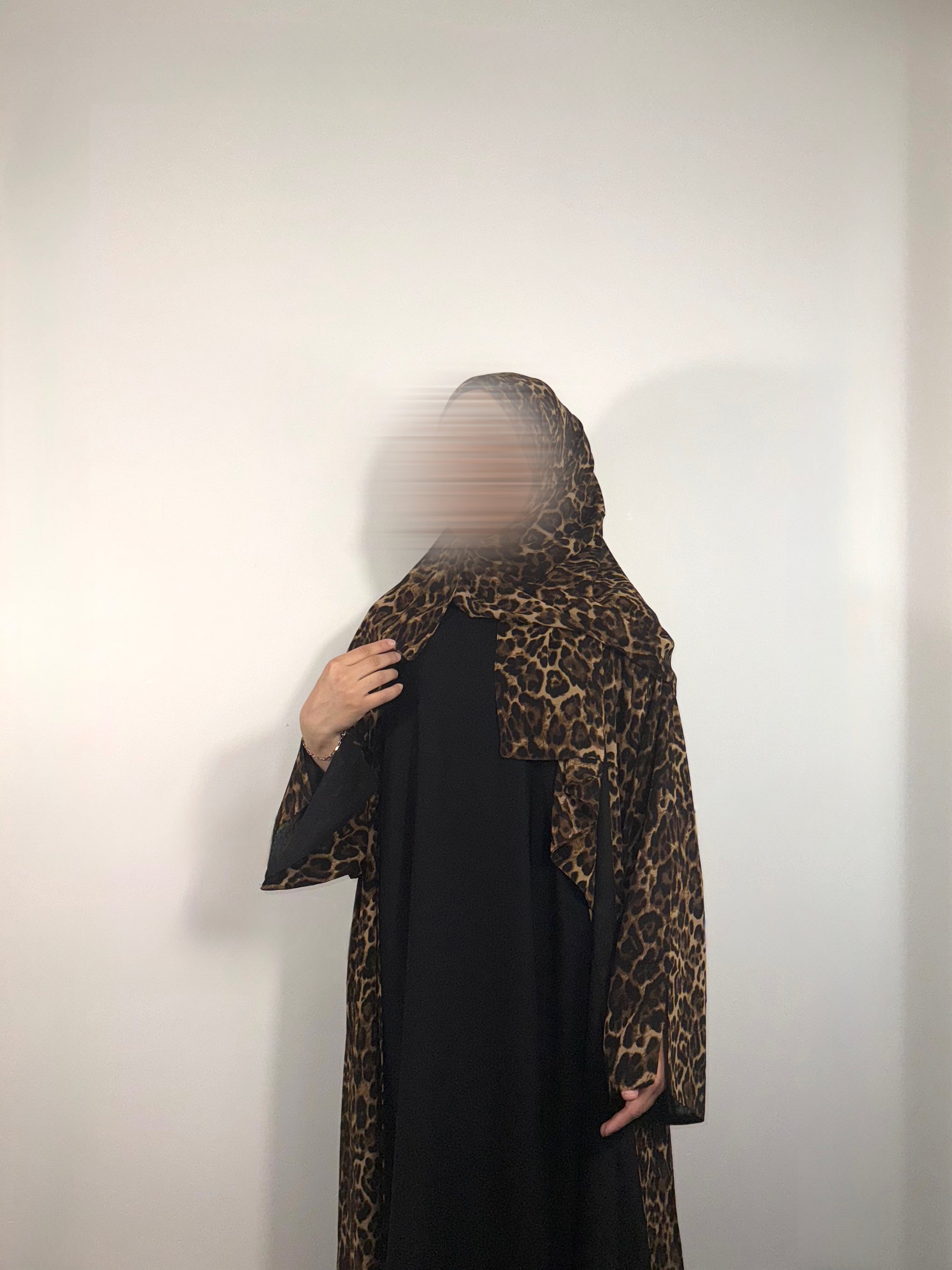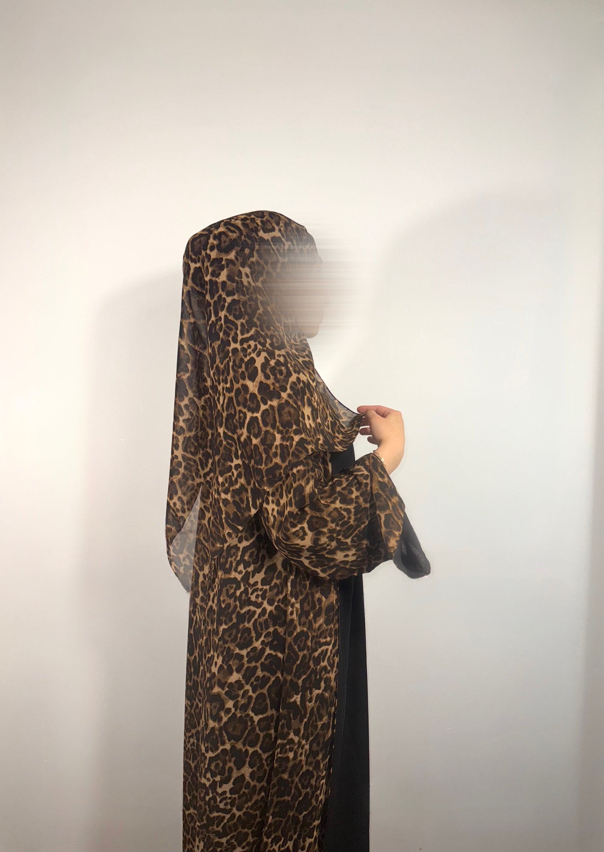 a chiffon abaya set in a moody leopard print.